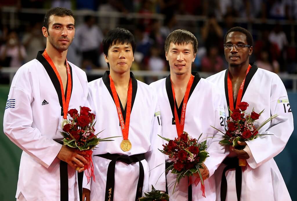 Корей жекпе-жегін қазақ жеріне алып келген —Мұстафа Өзтүрік. Елін, жерін аңсап келген Мұстафа Өзтүрік елімізде таэквондо спортының негізін қалап және жер-жерлерде өз мектебін ашты. Сол мектептерден шыққан өрендеріміз көп ұзамай ірі турнирлерде топ жара бастады. Шүкір, Бейжің олимпиадасында атыраулық шеберіміз Арман Шылманов аса ауыр салмақ дәрежесінде қола жүледегер атанды. Бұл қазақ спорты тарихындағы елеулі оқиғалардың бірі. Арман Шылманов алған асу -әлі күнге спорттың осы түріндегі ең ірі жетістігіміз болып қалып отыр.