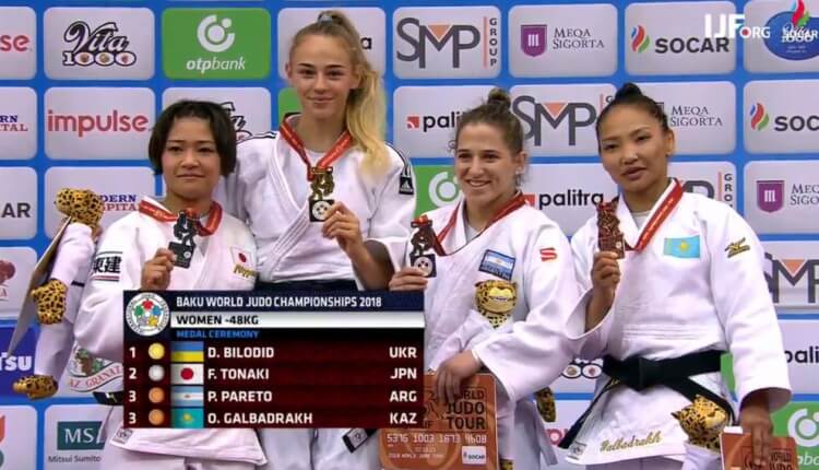 Дзюдо күресінен Бакуде өтіп жатқан әлем чемпионатында алғашқы медальдар жиынтығы сарапқа салынды. Әйелдер долдасында ел атынан сынға түскен балуанымыз Галбадрах Отгонцэцэг (-48 келі) әлем чемпионатының қола жүлдесін жеңіп алды, деп хабарлайды SportX.kz.