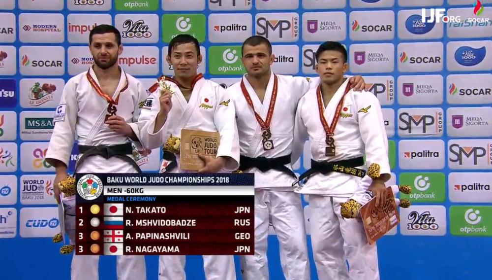 60 келі тартатын ерлер арасындағы белдесулердің нәтижесінде жапониялық Наохиса Такато үздік шықты. Күншығыс елінің майталманы финалдық сында ұпай санымен ресейлік Роберт Мшвидобадзеден алда болды. Роберт күмісті місе қылса, жапониялық Рбдзю Нагаяма мен грузиялық Амиран Папинашвили тұғырдың үшінші сатысына көтерілді. Осы салмақта күрескен ұлттық құрамамыздың балуаны Ғұсман Қырғызбаев өкінішке орай жүлдесіз қалды.