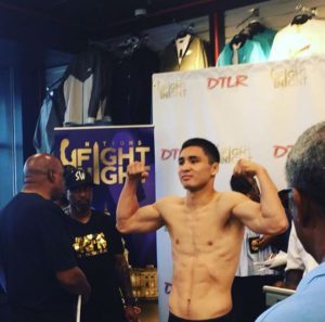 Қарсыластар матч алдында таразыға тартылу рәсімінен өтті. Тәжібайдың салмағы 145,9 , ал Джонсондікі -144,7 фунт болып шықты. Жалпы жартылай орта салмақ (66,6 келі -147 фунт) дәрежесіндегі лимитке сәйкес боксшылар салмағы 147 фунттан аспауы тиіс.